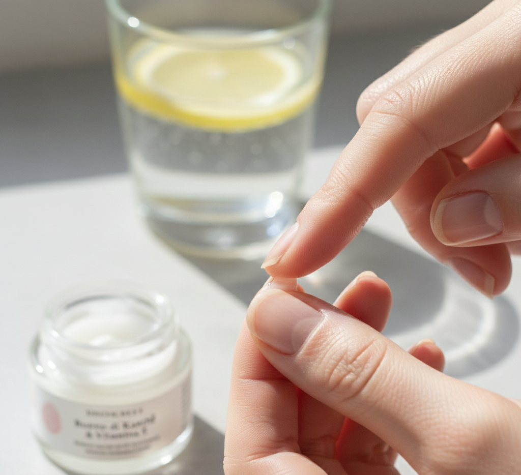 Prediligi prodotti con vitamina E, burro di karité o aloe vera, perfetti per rigenerare la matrice ungueale. Bere molta acqua e seguire un’alimentazione ricca di biotina e proteine favorisce la crescita naturale e la forza delle unghie.