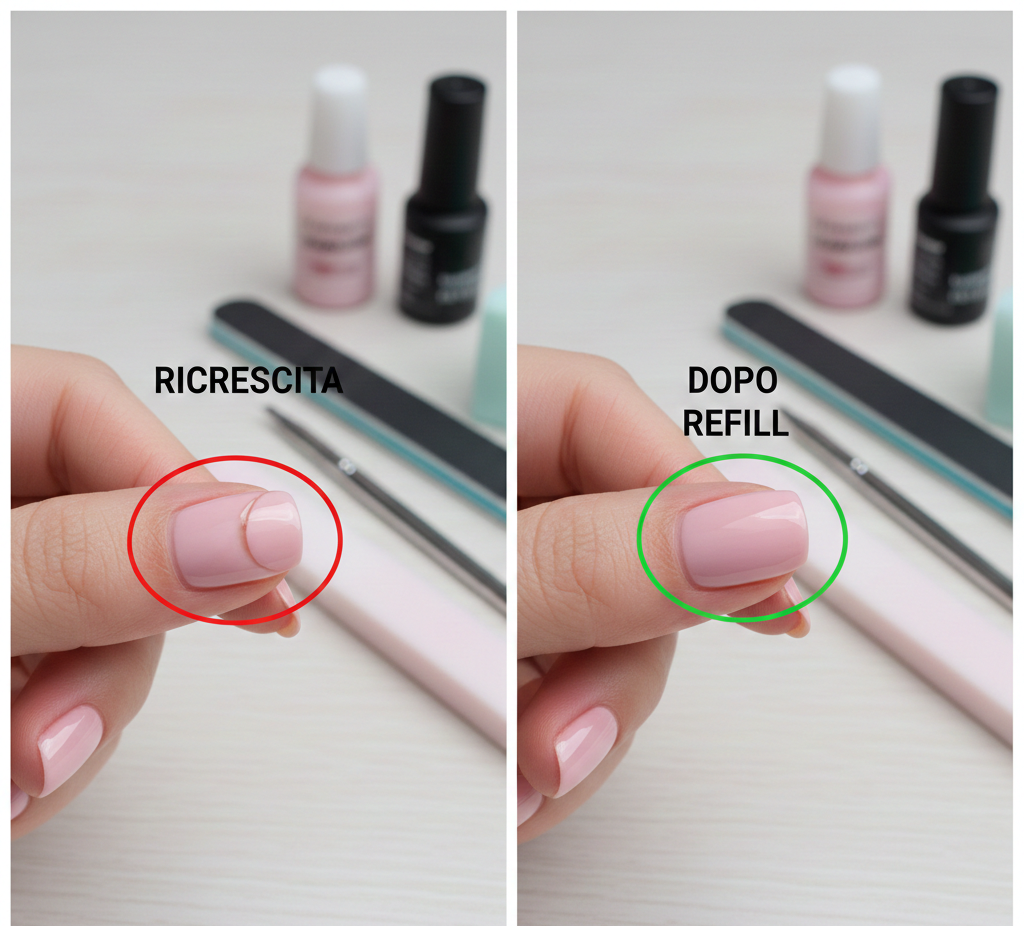 se la ricrescita del semipermanente inizia a superare i 3-4 millimetri, è meglio non limitarsi a coprirla. In questo caso, procedi con un refill completo per evitare sollevamenti e mantenere la ricostruzione uniforme e resistente.